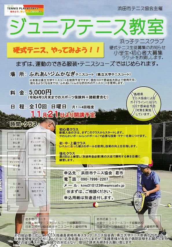 2021年12月17日 ジュニアテニス教室 浜っ子テニスクラブの、ジュニアテニス教室開催中。毎週日曜日、午前9時から、ふれあいジムかなぎテニスコートでレッスンしてます。体験レッスンもOKです。浜っ子テニスクラブ掲示板